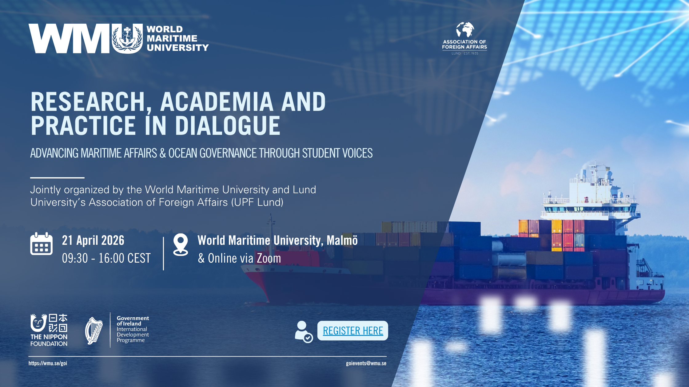 The World Maritime University (WMU)–Sasakawa Global Ocean Institute (GOI), in collaboration with Lund University’s Association of Foreign Affairs (UPF Lund), will host the workshop “Research, Academia and Practice in Dialogue: Advancing Maritime Affairs & Ocean Governance through Student Voices” on 21 April 2026, at the World Maritime University, Malmö, Sweden. This interdisciplinary event brings together students, researchers, and practitioners to engage in critical discussions on contemporary maritime and ocean governance.